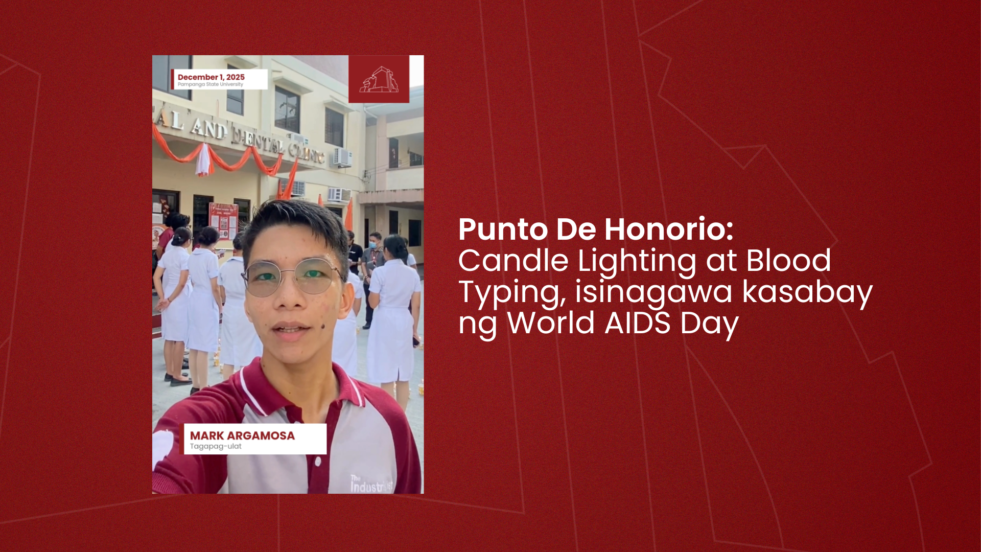 Bilang bahagi ng GAD Advocacy, nagsagawa ng Candle Lighting Ceremony at libreng Blood Typing ang Health Services Unit ng Pampanga State University, noong Lunes, December 1, sa Medical and Dental Clinic ng unibersidad.